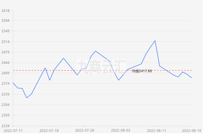 2022年8月19日LME电子盘铝开盘2404,收盘2393.5下跌11.5,最低最高,成交量11650。