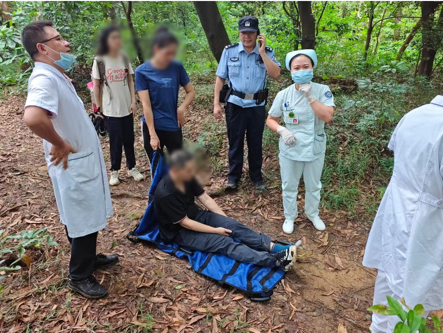 9月14日早上,王先生一家三口抵达西樵山,开始了他们的徒步之旅。然而,在返回途中,王先生却不慎踩到了一块湿滑的石头,摔倒在地,导致左脚脚踝肿胀疼痛不已,无法行走。面对陡峭湿滑的山路,王先生妻女尝试搀扶其下山,但因王先生身形较为高大,两人难以支撑其行走。无奈之下,他们只能报警求助。
