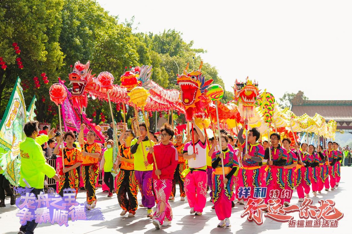 8日上午,“行运一条龙”祈福巡游活动也在大良街道苏岗龙母庙正式启动。巡游活动以“拜龙母”“龙眼点睛”等民俗仪式为核心,凝练“行龙运,接龙福”的寓意,通过10个镇街的龙舟文化元素组成一条“文化巨龙”,让市民游客在参与中感受到了民俗活动的独特魅力。
