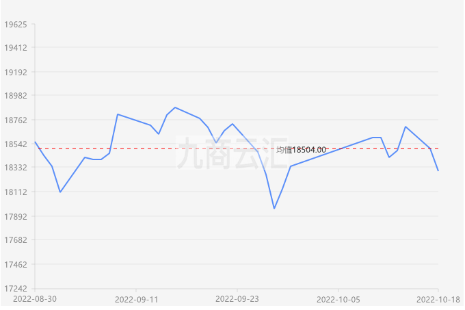 2022年10月18日上海现货铝价18300下跌200,最低18280最高18320,前三日均价18560,前五日均价18540。