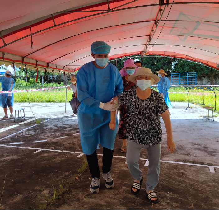 为了保障管控区村民医疗需求,该镇还专门安排工作人员及时梳理和收集村民的特殊需求,为村民送医送药。例如,五堡村村民陈伯,近期刚做完脚趾切除手术,需要到医院换药。了解到情况后,赤坎镇立即联系开平市卫健局,安排车辆和医生接陈伯到医院,通过专门通道帮助他完成换药,随后又专车送他回家。又比如,村民谭伯每个月都要定期注射胰岛素,实施管控后无法去开平市中心医院取胰岛素。工作人员了解到该情况后,便帮助其取回胰岛素并安排医护人员为其进行注射。