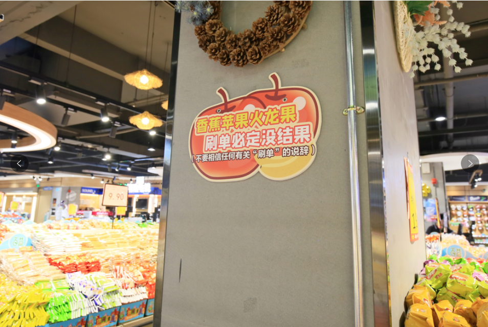 标语一经投放,就吸引了许多群众驻足观看。“生菜、芹菜、大白菜,别信低风险高回报的理财!”在超市购物的李女士看到蔬果区吊牌上的反诈标语,不自觉地跟读了起来。朗朗上口的宣传口号,巧妙地与各种商品结合,让人过目不忘、入脑入心,而在标语底下,民警还贴心地写上了具体的防骗技巧提示。“既有趣也通俗易懂,点赞!”李女士赞叹道。