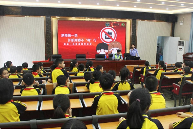 为进一步加强禁毒和交通安全宣传教育力度,提高辖区青少年的防毒拒毒及交通安全意识,4月12日,佛山市南海九江派出所联合九江交警中队到九江儒林第一小学开展禁毒、交通安全主题宣传活动,在孩子幼小的心灵播下“平安”的种子。