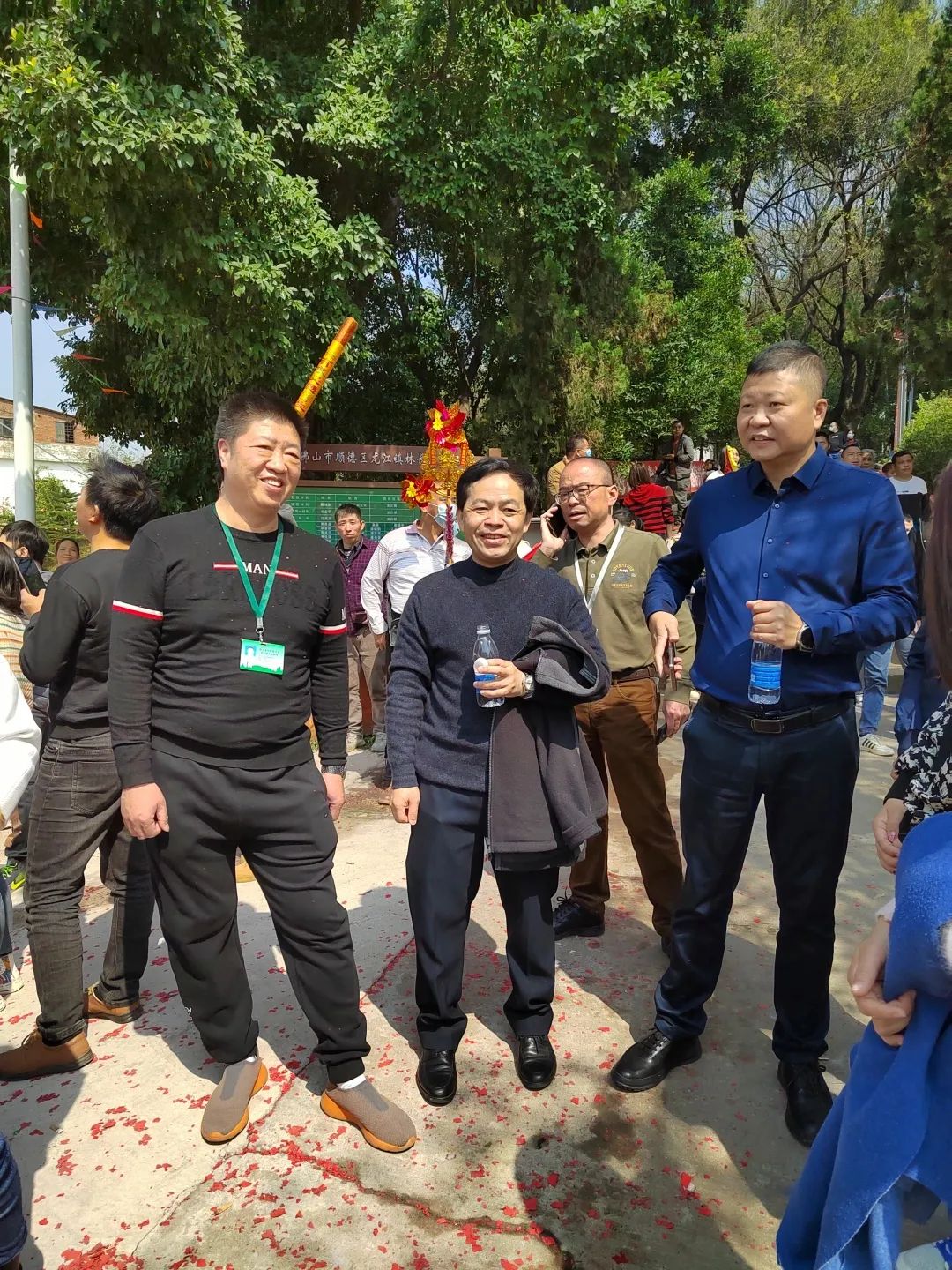 龙江镇党委书记甘志宇(右四)带领一行领导与民同乐,共赏民俗 ,龙江镇党委副书记、镇长伍成亮(右三),龙江镇党委副书记毕景刚(左二),龙江镇党委委员罗国勇(右二),龙江镇副镇长刘振峰(左一),龙山社区党委书记、居委会主任温家广(右一),龙山同乡会副会长、人人酒店董事长陈志(左三)亦参与了活动。