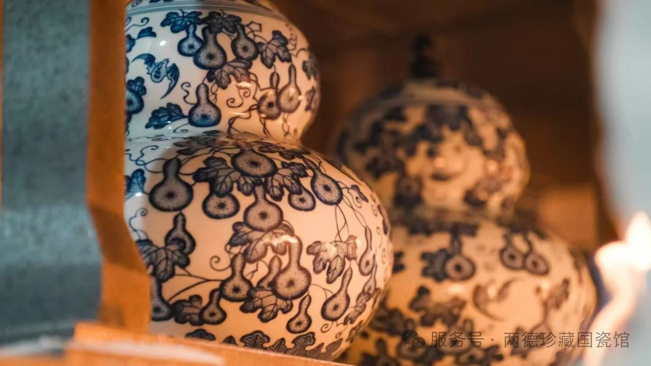 如今,这份古典的韵味与美好的祝愿,在佛山顺德两德国瓷馆得到了新的诠释与传承。佛山顺德两德国瓷馆内,有一款以此为灵感,精心打造的青花缠枝葫芦飞蝠纹盖罐,不仅复刻了那份古典韵味,更在设计中融入了现代审美与实用功能,使之成为了当代家居装饰与收藏的新宠。