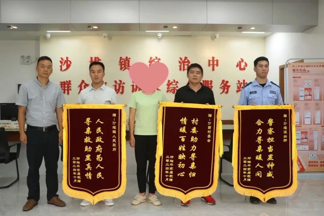 “谢谢,真是太谢谢你们了!”。看着失而复得的重要物品聂女士激动不已,事后特意定制了一面锦旗,让其儿子送到了江门新会沙堆派出所,对民警帮其找回丢失物品表示敬意和感谢